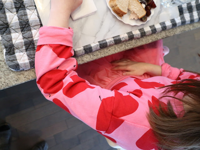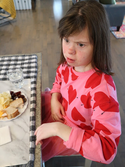 She’s eating her lunch at the island counter which is her usual lunch spot.